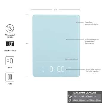 KitchenAid KQ913MW Digital Waterproof (IPx7) Kitchen and Food Scale, LED readout, 11 Pound Max Capacity, Mineral Water
