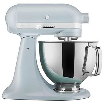 Show moreDiscover the KitchenAid RRK150MB 5 Qt. Artisan Series in Misty Blue, a stunning addition to any kitchen. With its powerful 325-watt motor and 10 different speeds, this mixer offers the versatility needed to whip, beat, and knead your way to baking perfection. The beautiful misty blue finish not only adds a pop of color but also enhances your kitchen aesthetics. The large 5-quart stainless steel bowl provides ample space for mixing larger batches, whether you're preparing a cake for a birthday party or mixing dough for homemade bread. Designed with a tilt-back head, it allows for easy access to your mixture and effortless ingredient addition, making your cooking experience smooth and hassle-free.