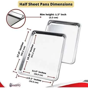 KITCHENATICS Premium Quality Half Sheet Size Baking Pans, Nonstick Cookie Sheets for Baking, Oven Safe Baking Sheet Pans, Heavy Duty 1/2 Commercial Baking Sheets for Oven - 13.1" x 17.9" IN, Set of 2