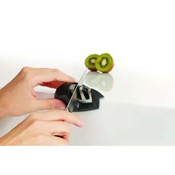 Introducing the KitchenIQ 50009 Edge Grip 2 Stage Knife Sharpener, the ultimate kitchen companion designed for culinary enthusiasts and professionals alike. This innovative sharpening tool is engineered with a unique V-Grip Bottom, ensuring stability on both edges and counters. Crafted from high-quality metals, it not only provides durability but also features a stylish range of color tones that will complement any kitchen decor. The soft grip handle...