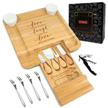 - Complete Cheese Serving Set: Includes a slide-out drawer containing four specialized forks and a wine bottle opener, ensuring you have everything needed for an unforgettable cheese night.