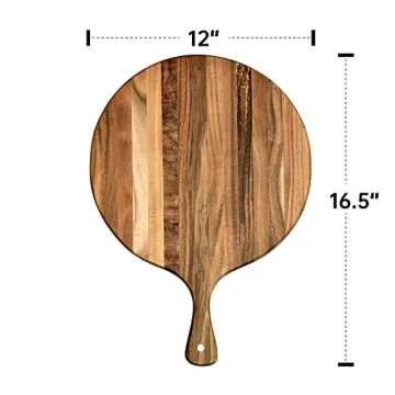 KITEISCAT Acacia Wood Round cutting board with handle 16” x 12”– Round Pizza Paddle & Cutting Serving Board for Home Baking, Cheese, Fruits, Vegetables, Bread, Charcuterie