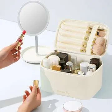 KITENROM Travel Makeup Bag Portable Cosmetic Bags for Women Large Toiletry Bag Case Pouch Organizer Waterproof (Light Beige)