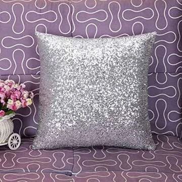 Transform your living space with the exquisite Kithomer Sequins Throw Pillow Cover! Crafted for both style and comfort, this sparkling decorative pillow cover is an essential addition to your home decor. Each cover features a stunning front adorned with high-quality, shimmering sequin fabric that catches the light beautifully, while the reverse is made of soft satin, ensuring a touch of luxury. With a size of 16 x 16 inches, these pillow covers are perfect for standard-size pillow inserts...
