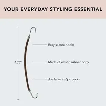 Available in three versatile colors—black, brown, and blonde—these bungee elastics cater to the diverse palette of hair colors, ensuring you find the perfect match for your locks. Each package includes six premium-quality hooks, making it easy to keep a stock at home, in your bag, or wherever your day takes you.