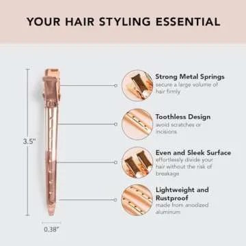 Show more The Kitsch Duck Clips for Hair Rollers are the ultimate solution for those who love to style their hair effortlessly. Designed for both professionals and home users, these hair sectioning clips are a stylist's best friend. Each clip is made from high-quality anodized aluminum, ensuring that they are both lightweight and rustproof. The pro-strength hinges of these clips provide a secure grip, making them perfect for holding both wet and dry hair without the hassle of slippage.