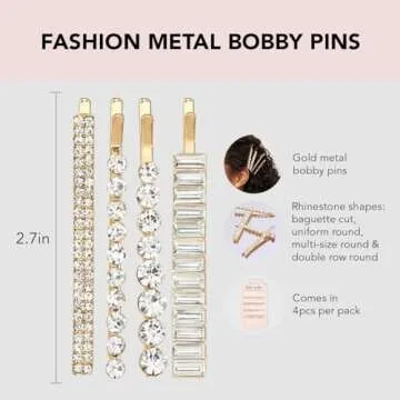 Kitsch Rhinestone Hair Accessories for Women - Gold Hair Pins | Stylish and Decorative Bobby Pins for Weddings, Party, Events or Everyday Look - Set of 4, Gold with Assorted Design