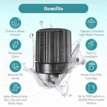 Kitsch Shower Filter Head for Hard Water - Water Softener Shower Head, Improves Hair, Nails & Skin, Removes Chlorine, Heavy Metals & Harmful Substance, Neutralize Odors, Easy Installation - Black