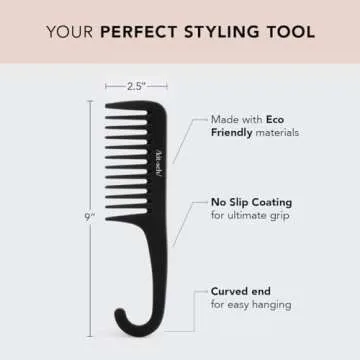 Kitsch Wide Tooth Detangler Comb - Curved Handle for Curly, Wet & Thick Hair, Black Shower Comb for Women