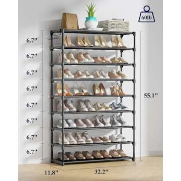 Kitsure Shoe Rack - Premium Non-Woven Shoe Rack Shelf, Shoe Organizer for Closet, Entryway, Garage & Corridor, Sturdy & Durable Long Stackable Shoe Shelves, 5X-Large, Black