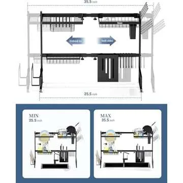 Kitsure Stainless Steel Dish Drying Rack (35.5in), Adjustable Over-The-Sink Drying Rack, Multifunctional Kitchen Organizer