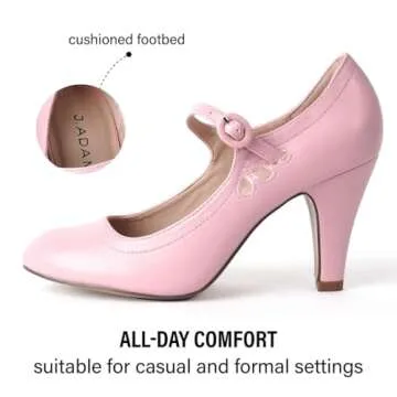 Kitten Heels Mary Jane Pumps By Zooshoo- Adorable Vintage Shoes- Unique Round Toe Design With An Adjustable Strap,Rose Pink,8 B(M) US