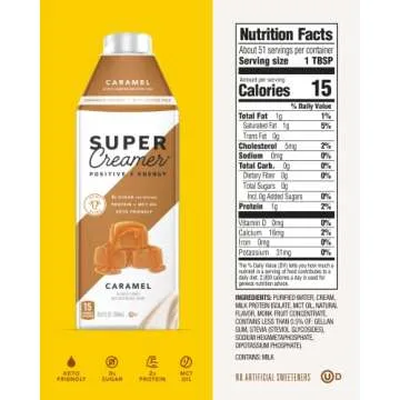 Show moreAwaken your mornings with KITU SUPER COFFEE Keto Coffee Creamer in the delicious caramel flavor, a must-have for keto dieters and coffee lovers alike. This keto-friendly creamer transforms your coffee into a rich, flavorful experience without the guilt. Each convenient 25.4 Fl Oz bottle is perfectly crafted to nourish your body, featuring only 40 calories per serving. Delight in its creamy texture and caramel essence while enjoying 0g added sugar and a generous 2g of protein.