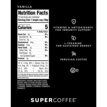 Show more Discover the invigorating blend of flavor and functionality with the KITU SUPER COFFEE Pods. Designed for those who demand more from their morning brew, these pods are packed with twice the caffeine and essential vitamins and antioxidants, giving you not just an energy boost but also immunity support. Each cup is infused with a creamy vanilla flavor that perfectly complements your keto lifestyle without the guilt of added sugars. The KITU SUPER COFFEE Pods are compatible with Keurig 2.0 K-Cup Brewers, making it easy to brew a delicious cup of super-coffee any time of the day!