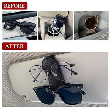 Show moreIntroducing the KIWEN Sunglasses Holder for Car Visor, the ultimate accessory for every eyewear enthusiast! Engineered with precision and crafted from high-quality leather and aluminum alloy, this magnetic sunglass holder not only ensures you never misplace your favorite shades again but also adds a touch of elegance to your car interior. A perfect fit for various styles of eyewear—be it sunglasses, prescription glasses, or reading glasses—this innovative design can securely store two pairs of glasses simultaneously, with enough distance between clips to prevent any scratches. Never worry about lost or scratched glasses while you’re on the road again!