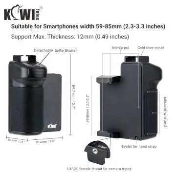 KIWIFOTOS Phone Camera Grip Handle Holder Phone Tripod Mount with Detachable Remote Shutter & Cold Shoe Adapter for iPhone 14 15 16 Pro Max Samsung Smartphone Selfie Vlog Video Shooting, Black