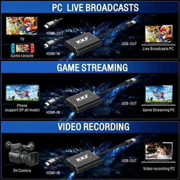 Show more Introducing the KKF 4K HDMI Capture Card, your ultimate companion for streaming and recording high-quality gameplay from consoles like PS5, PS4, Xbox Series X/S, and Nintendo Switch. Designed with gamers in mind, this 1080P 60FPS Video Capture Card ensures that every incredible gaming moment is captured with crystal clarity and outstanding smoothness. Equipped with state-of-the-art HD ultra-low latency technology, the KKF Capture Card allows real-time gaming experiences without lag, making it an essential tool for streamers and content creators looking to elevate their game.