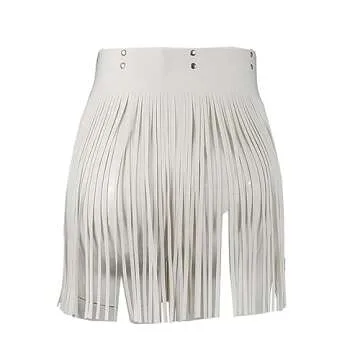 Show moreStep into the spotlight with the striking KKmeter Women's Faux Leather Waistband Fringe Tassel Skirt. This stunning white tassel skirt masterfully blends a fashionable bohemian vibe with modern chic. Crafted from high-quality faux leather, it boasts softness and flexibility, ensuring both comfort and durability for all-day wear. The high waist design accentuates your figure, while the unique fringe tasseling adds dynamic flair—perfect for showcasing your moves on the dance floor or making an unforgettable entrance at parties!