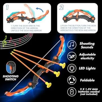 Show moreIntroducing the KKONES Kids Bow and Arrow Set, a perfect blend of creativity and fun tailored for your little archers! This 2-in-1 shooting game features an innovative design that allows children to easily switch between two exciting modes: shooting with an air gun or practicing archery with a traditional bow. Equipped with a total of 12 foam balls, 10 arrows, and a quiver to keep everything organized, kids can enjoy a thrilling experience that fosters both entertainment and skill development. With eye-catching LED lights incorporated into the archery toy, your kids can track arrows even in low-light conditions, ensuring that the fun continues day or night!