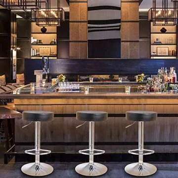KKTONER Round Bar Stool PU Leather with Footrest Height Adjustable Swivel Pub Chair Home Kitchen Bar stools Backless Stool (Black)