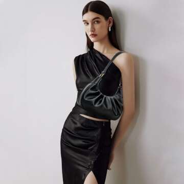 KKXIU Shoulder Bag Crescent Handbag Ruched Purse - Black