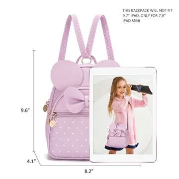 KL928 Girls Mini Backpack Bowknot Polka Dot Cute Small Daypacks Convertible Shoulder Bag Purse for Women