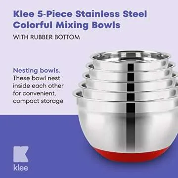 Klee 5-Piece Stainless Steel Colorful Mixing Bowls with Rubber Bottom, Set of 5