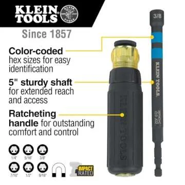 If searching for the right tool frustrates you, you'll appreciate the color-coded hex sizes that allow for rapid identification of each driver at a glance. Experience the difference with this exceptional set, where functionality meets quality, and every feature caters to your needs. Say goodbye to inefficiency and embrace the Klein Tools Nut Driver Set for your next project!