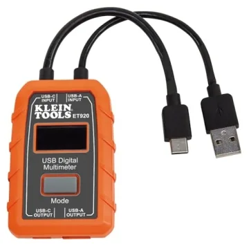 The Klein Tools ET920 USB Power Meter is an exceptional tool crafted for anyone who seeks reliability, precision, and convenience in monitoring USB power outputs. This innovative device allows users to test voltages ranging from 3 to 20V DC and can accurately measure current from 0.05 to 3A using standard USB-A ports and up to 5A with USB-C ports. This level of versatility makes it compatible with most common USB ports, including Qualcomm Quick Charge ports, ensuring you can monitor a wide range of devices...