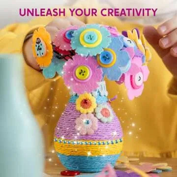 Klever Kits Button Flower Craft with 2 Vases - Make Your Own Flower Bouquet with Button and Felt - DIY Kits Art and Crafts Gift for Birthday