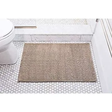 Klickpick Designs Thick Plush Bath Mats Soft Bath Mat Chenille Washable Bath Rugs Microfiber Shaggy Non Slip Bathroom Rug Anti Slip Absorbent Bath Rug Carpet with Non Skid Backing (24" x 35", Beige)