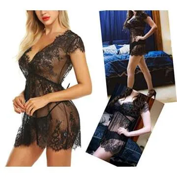 Klier Women Sexy Lingerie Nightwear Lace Babydoll with Plunging Eyelash Teddy