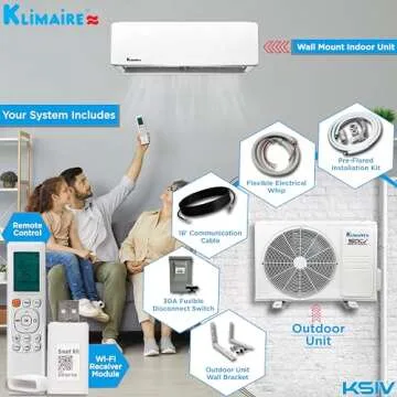 Show more Discover the ultimate comfort solution with the advanced 9,000 BTU KSIV system. This extraordinary unit not only boasts an impressive energy efficiency rating of up to 21.5 SEER2, but also provides reliable heating and cooling for spaces up to 350 sq. ft. Ideal for both residential and commercial applications, it seamlessly adapts to seasonal changes, ensuring a pleasant atmosphere all year round.