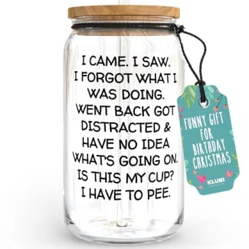 Introducing the KLUBI I Came I Saw I Forgot Cup, a delightful 16-ounce glass tumbler designed to bring joy and laughter to any occasion! This clear glass tumbler features a unique and witty design that proudly declares "I Came I Saw I Forgot," making it the perfect gift for individuals with a fantastic sense of humor. Ideal for both men and women, it serves as a memorable gag gift, ideal for birthdays, retirement celebrations, or simply to brighten someone’s day. Its versatile nature ensures...