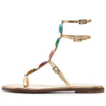Show moreIntroducing the Kluolandi Jewelled Flat Gladiator Sandals for Women, where style meets comfort in a stunning package. These sandals feature a captivating gladiator design, adorned with vibrant multicolour faux gemstones that provide a fabulous pop of colour to any outfit. With their open-toe T-strap silhouette, these sandals showcase your pedicure while promoting breathability - making them the ideal choice for sun-soaked summer adventures. Each pair is meticulously crafted using soft faux leather that is gentle on your skin, ensuring you can flaunt them all day without worry.