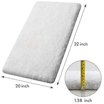 Show more Introducing the KMAT White Bathroom Rugs Bath Mat – a luxurious addition to your home that combines comfort with functionality. Measuring 20" x 32", this soft shaggy shower rug is expertly crafted from ultra heavy-density microfiber, designed to provide a plush, absorbent barrier against cold and hard floors. Experience premium softness with every step, as this rug cradles your feet while ensuring they stay warm and dry. Its elegant white color effortlessly elevates any bathroom or living space, making it not just a mat, but a stylish décor piece.