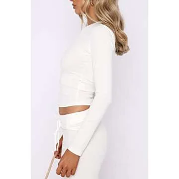 KMBANGI Women Crewneck Skinny Shirt Long Sleeve Basic Slim Crop T Shirts Knit Ribbed Layer Tee Tops Fashion Streetwear