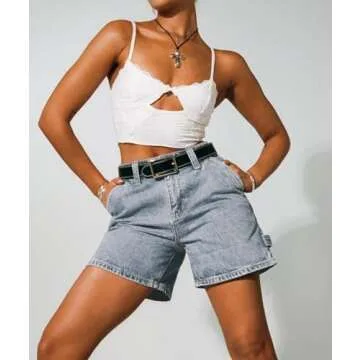 KMBANGI Y2k Women Jean Shorts High Waisted Carpenter Denim Shorts with Pockets Trendy Fashion Summer Shorts(Chic Light Blue,S)