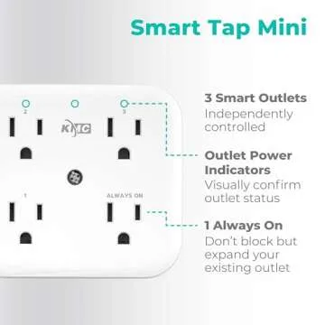 Show moreIntroducing the KMC Smart Tap Mini 2-Pack, an innovative solution for your smart home needs. This wall-mounted plug adapter features a total of four outlets, including three individually controllable Wi-Fi outlets and one always-on outlet, perfect for devices that require constant power. With seamless integration with popular voice assistants like Alexa and Google Assistant, you can effortlessly control your devices using just your voice. Whether you want to turn on your lamp, coffee maker, or any other device, the KMC Smart Tap Mini simplifies your life with just a few simple commands.