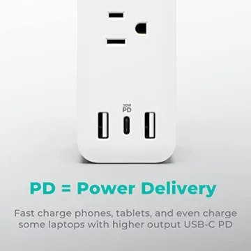 Show moreIntroducing the KMC USB-C PD Surge Protector 3-Outlet Power Strip 2-Pack, your ultimate solution for all your charging needs. Whether you’re at home or in the office, this innovative power strip is designed to keep your devices powered up and safe from surges. With a robust 30W Power Delivery USB-C port, it allows you to charge your smartphones and tablets over **five times faster** than traditional charging methods, making it a game changer for tech enthusiasts. Additionally, the thoughtful design includes three adapter-spaced outlets, ensuring that you can accommodate those bulky plugs without wasting valuable space. Featuring two USB-A ports along with the main USB-C port, you can charge multiple devices simultaneously, eliminating the need for multiple chargers.