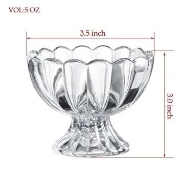 Show more Indulge in delightful desserts with our exquisite set of 6 ice cream bowls, designed not just for functionality but also for elegance. Each bowl boasts a flower-shaped edge that enhances its aesthetic appeal, making it an ideal centerpiece for your gatherings. These bowls are crafted from high-quality glass, ensuring they stand the test of time while adding a touch of sophistication to any occasion. Perfect for serving ice cream, sundaes, fruits, salads, and snacks, their 5-ounce capacity makes them versatile for a variety of treats.