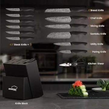 Knife Set, 15 Pieces Kitchen Knife Set with Built in Knife Sharpener Block