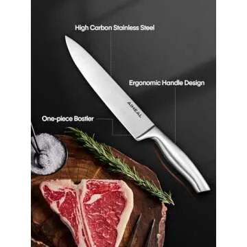 Show moreIf you're ready to transform your culinary experience with a knife set that blends aesthetics with unmatched performance, look no further than the Aiheal 14PCS Kitchen Knife Set. This stunning collection of knives not only brings elegance to your kitchen with its modern clear acrylic knife stand but also boasts industry-leading functionality. Crafted from premium X50CrMoV15 stainless steel, each knife is engineered for intense strength and remarkable rust resistance, ensuring they stay sharp and ready for any cutting task. Designed with a sharp edge for impeccable slicing, this set is perfect for everyone from the aspiring home chef to seasoned professionals.
