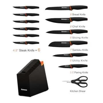 Astercook 15 Pcs Dishwasher Safe Kitchen Knife Set - Sharp, Stylish, Functional