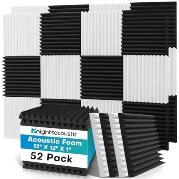 Transform your space into a professional audio environment with the Knightsacoustic 52 Pack Acoustic Foam Panels. These high-density, 1 x 12 x 12 inches soundproof foam panels are expertly designed to absorb sound, reducing noise pollution and minimizing echoes for a cleaner, more focused audio setting. Ideal for studios, recording booths, control rooms, and radio stations, our acoustic panels manage reverberation, eliminating standing waves and flutter in any space. Made from resilient material that quickly...