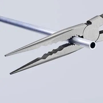 Show more Introducing the KNIPEX Tools - 2 Piece Extra Long Needle Nose Pliers Set, your perfect companion for precision work and intricate tasks. Renowned as the Number 1 Choice of Tradesman Worldwide, KNIPEX combines unparalleled craftsmanship with innovative design to ensure comfort and performance. This set includes two specialized pliers: the 28 71 280 and 28 81 280, each designed with an extra-long shaft for increased reach in tight spaces. They come neatly housed in a durable keeper pouch for easy transportation and storage, making them perfect for use in the workshop, at home, or out in the field.