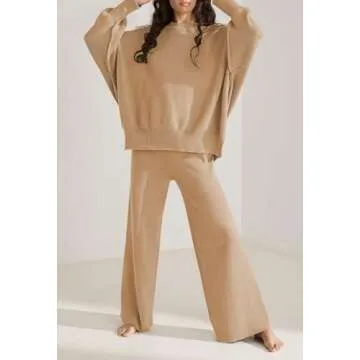 Show moreIntroducing the epitome of casual elegance: the Knit Pant Sets Women 2 Piece Sweater Outfits. This chic ensemble features an oversized long sleeve sweater pullover crafted from premium knitted fabric, designed to keep you cozy while making a fashion statement. The chunky batwing sleeves and dropped shoulder design offer a relaxed silhouette, allowing for ultimate comfort without compromising style. The sweater is adorned with a stylish side split, making it perfect for layering or showcasing your favorite top underneath. Paired with high waist wide-leg pants, this set exudes a chic vibe with its loose knitted palazzo style that comes with an elastic waistband for a comfortable fit.