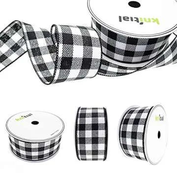 Knitial Buffalo Plaid Wired Ribbon 2-1/2 Inches x 25 Yards Black and White Buffalo Check Ribbon for Gift Wrapping, Crafts, and Decorations