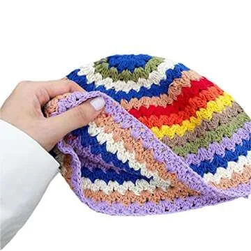 Knitted Bucket Hat for Women Foldable Wide Brim Crochet Hat Floral Pattern Handmade Fisherman Cap Beach Sun Hat (04-Stripes Purple, One Size)
