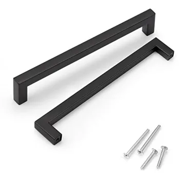 Show moreIntroducing the KNOBWELL 6 Pack Matte Black Kitchen Cabinet Door Handles, an elegant solution to elevate your home decor and transform ordinary cabinets into extraordinary statement pieces. Crafted from high-grade stainless steel with a sleek matte black finish, these handles boast a sophisticated aesthetic that seamlessly complements any kitchen or bathroom vanity. Designed with style and functionality in mind, they feature a modern T-Bar square design that ensures a comfortable grip.